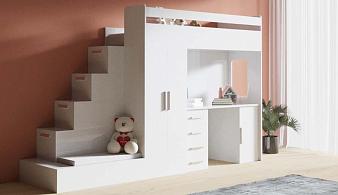Кровать-чердак со столом и шкафом Дропс-2 BMS