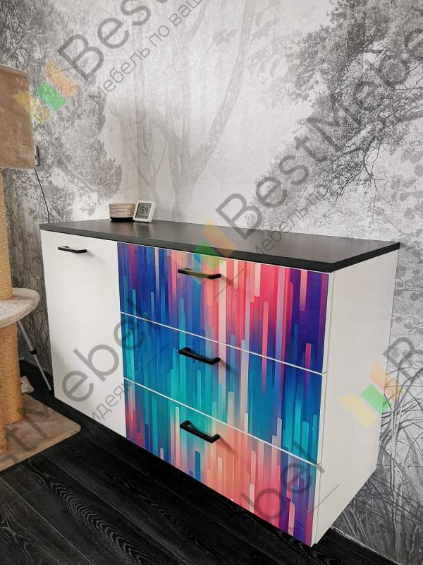 Комод Лаврика 12 BMS – для легкого и притягательного интерьера с «весенним» настроением. Отличительные особенности этой подвесной модели – изящный цветочный принт на фасаде и столешница с имитацией массива дерева. Справа располагаются три глубоких выдвижных ящика для одежды и постельного белья, а слева – просторное отделение с полками и глухой распашной дверцей. Купить комод Лаврика 12 BMS с возможностью выбора цвета и размеров приглашаем в наш интернет-магазин.