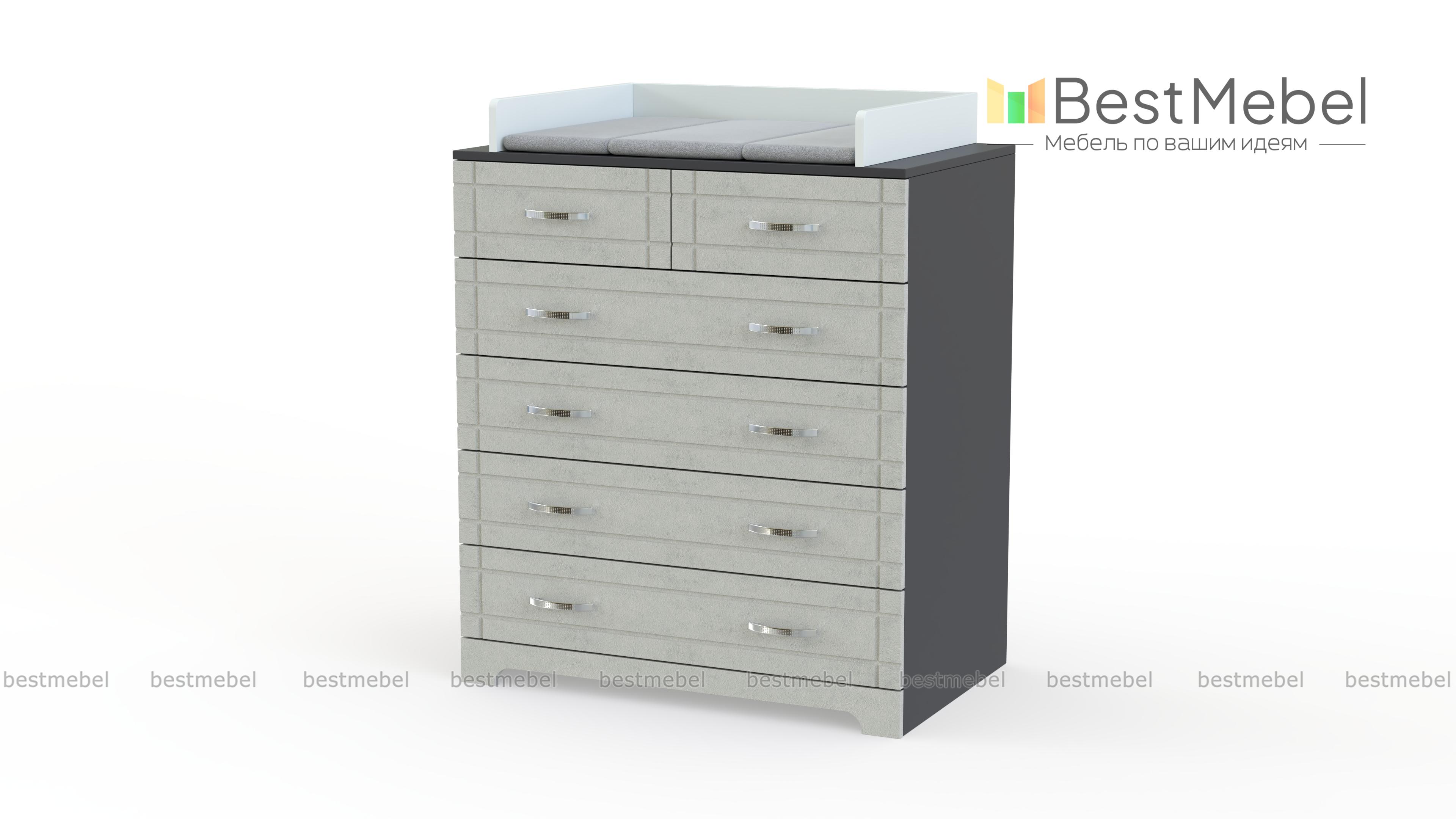 Пеленальный комод Кейт 4 BMS оснащен двумя малыми и четырьмя большими выдвижными ящиками, в которых разместятся как гигиенические средства и прочие мелочи, так и одежда и постельное белье. Пеленальная поверхность ограничена с трех сторон бортиками для защиты малыша от случайного падения и дополнена мягкой накладкой. Износостойкий цветной фасад с фрезеровкой придает глубокому комоду визуальную легкость. Купить пеленальный комод Кейт 4 BMS приглашаем в наш интернет-магазин с выбором цвета по каталогу.