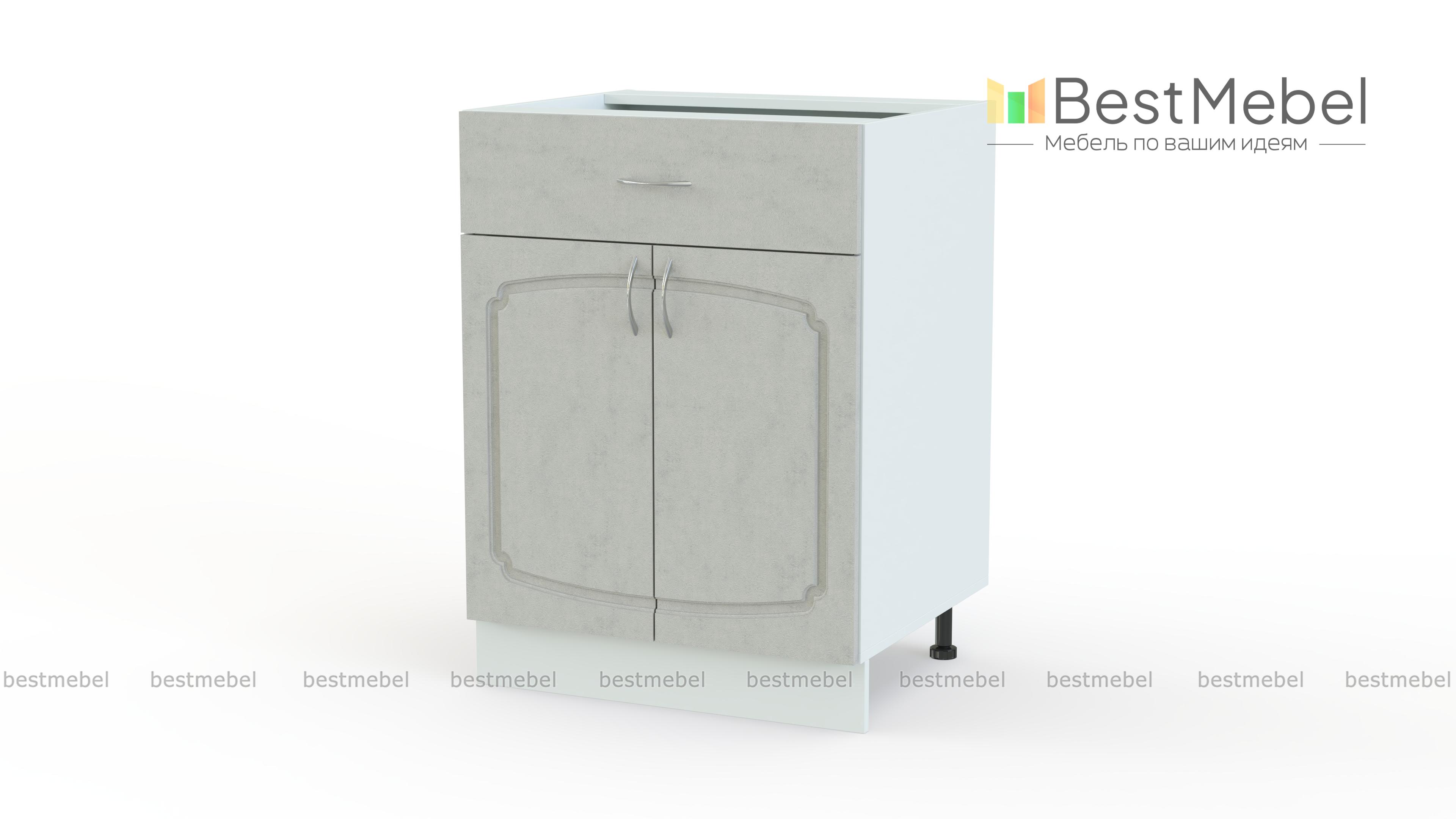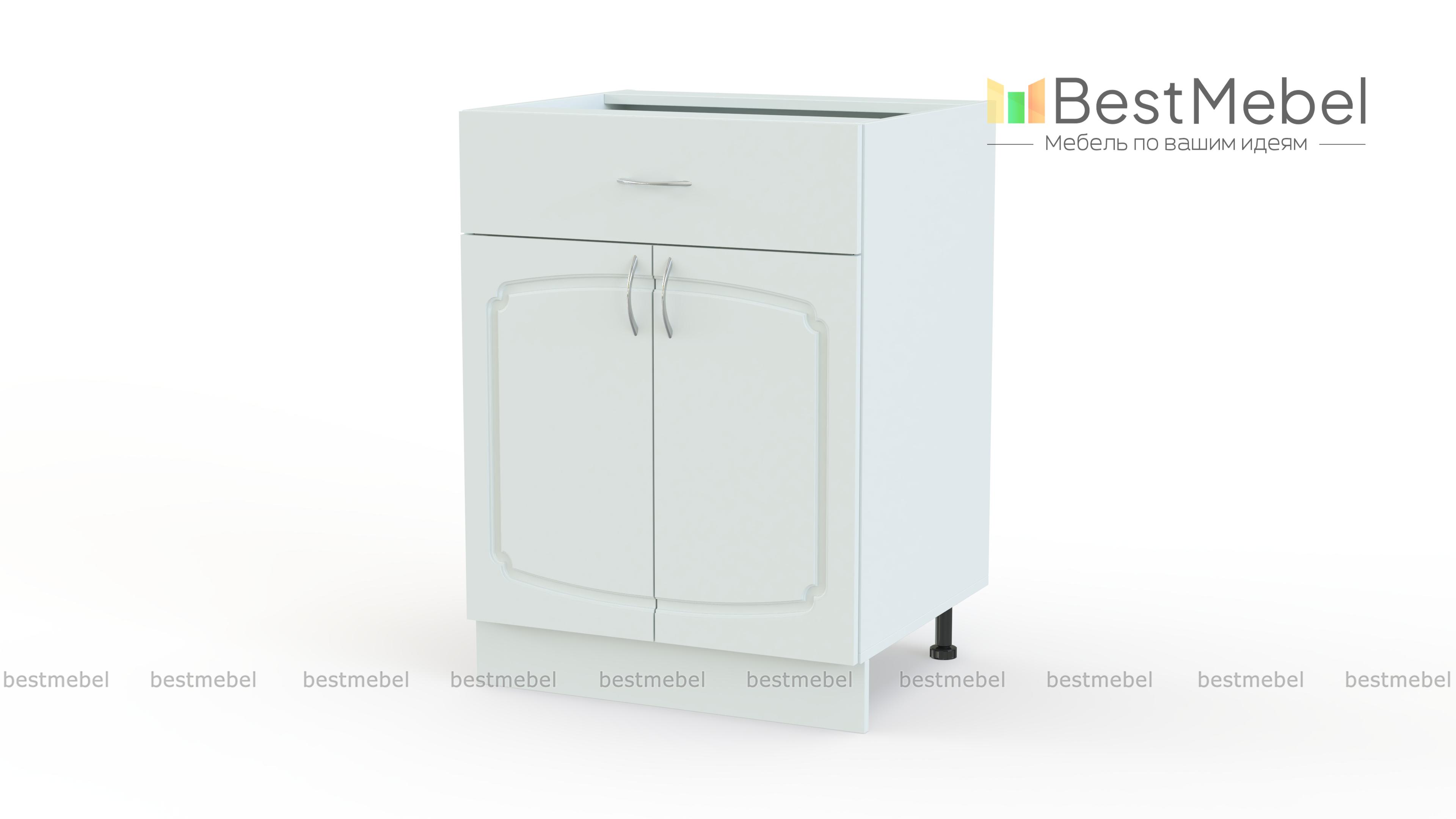 Эмилия шкаф напольный с ящиком BMS дополнит нижний ряд элегантной модульной системы и сделает интерьер кухни функциональнее. Классическая модель оборудована двумя типами отделений – широким выдвижным ящиком для столовых приборов и распашной секцией с полкой, подходящей для хранения запасов продуктов и габаритных кухонных принадлежностей. Эффектный вид шкафу придают фигурно вырезанный фасад с фрезеровкой и ручками под серебро. Купить Эмилия шкаф напольный с ящиком BMS вы всегда сможете в нашем интернет-магазине по приятной цене.