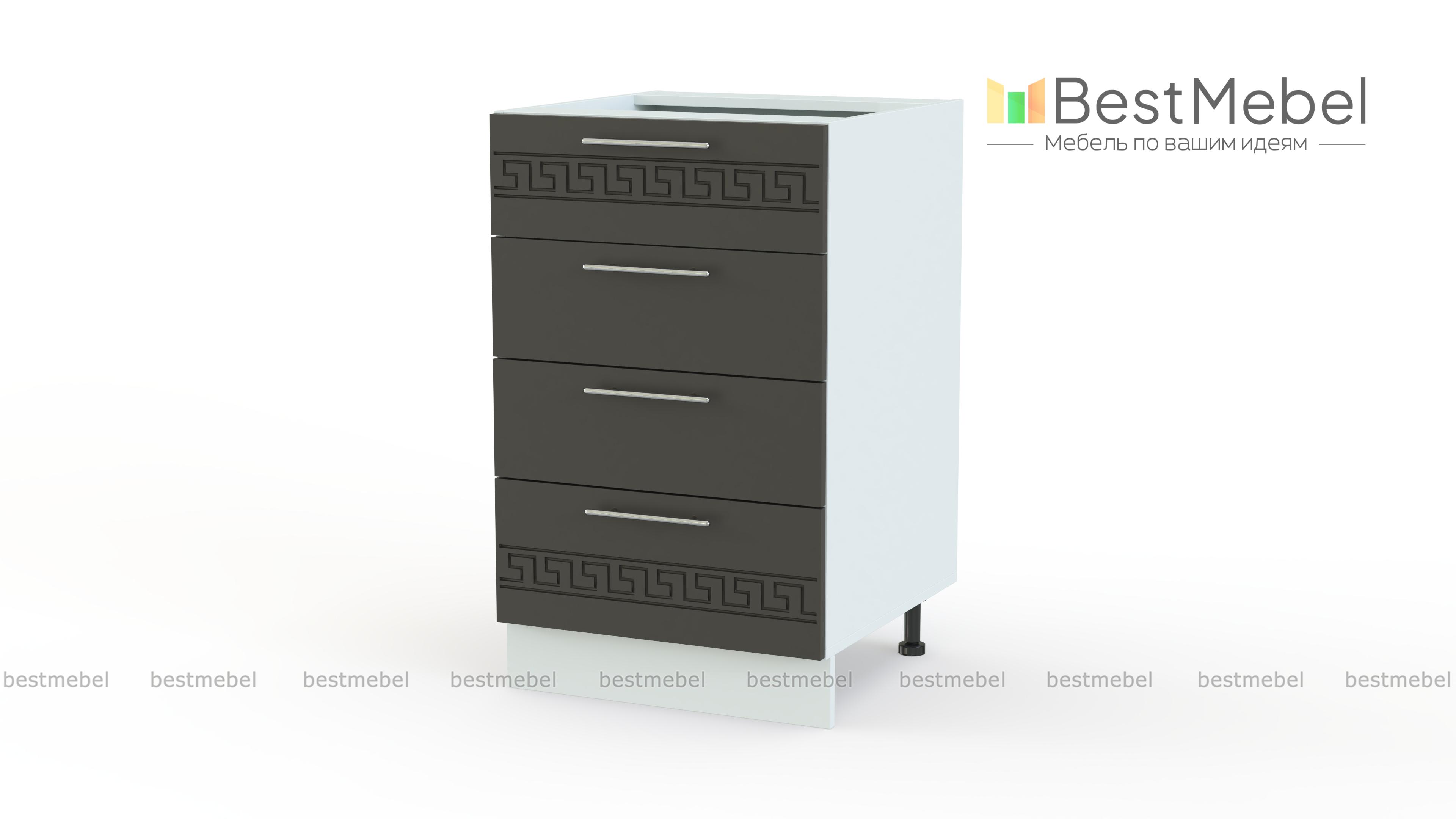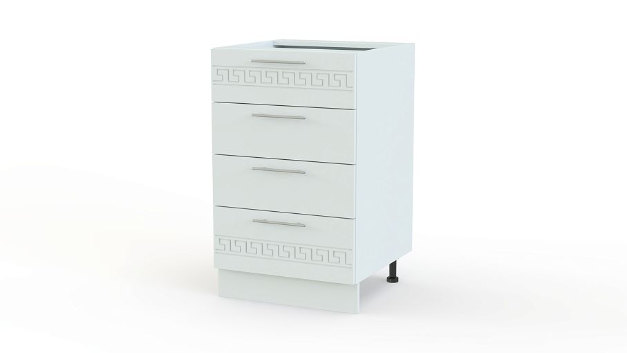 Тумба напольная 4 ящика Греция BMS – оригинальная широкая модель для меблировки кухни. Уместная и в качестве дополнения к комплекту, и самостоятельно, тумба отличается изящным дизайном – матовые фасады светлых тонов декорированы орнаментом. Разместить под рукой необходимые мелочи помогут четыре просторных выдвижных ящика, а удобной рабочей поверхностью станет столешница. Купить тумбу напольную 4 ящика Греция BMS и сэкономить время на поиски нужной вещи вам всегда поможет наш интернет-магазин.