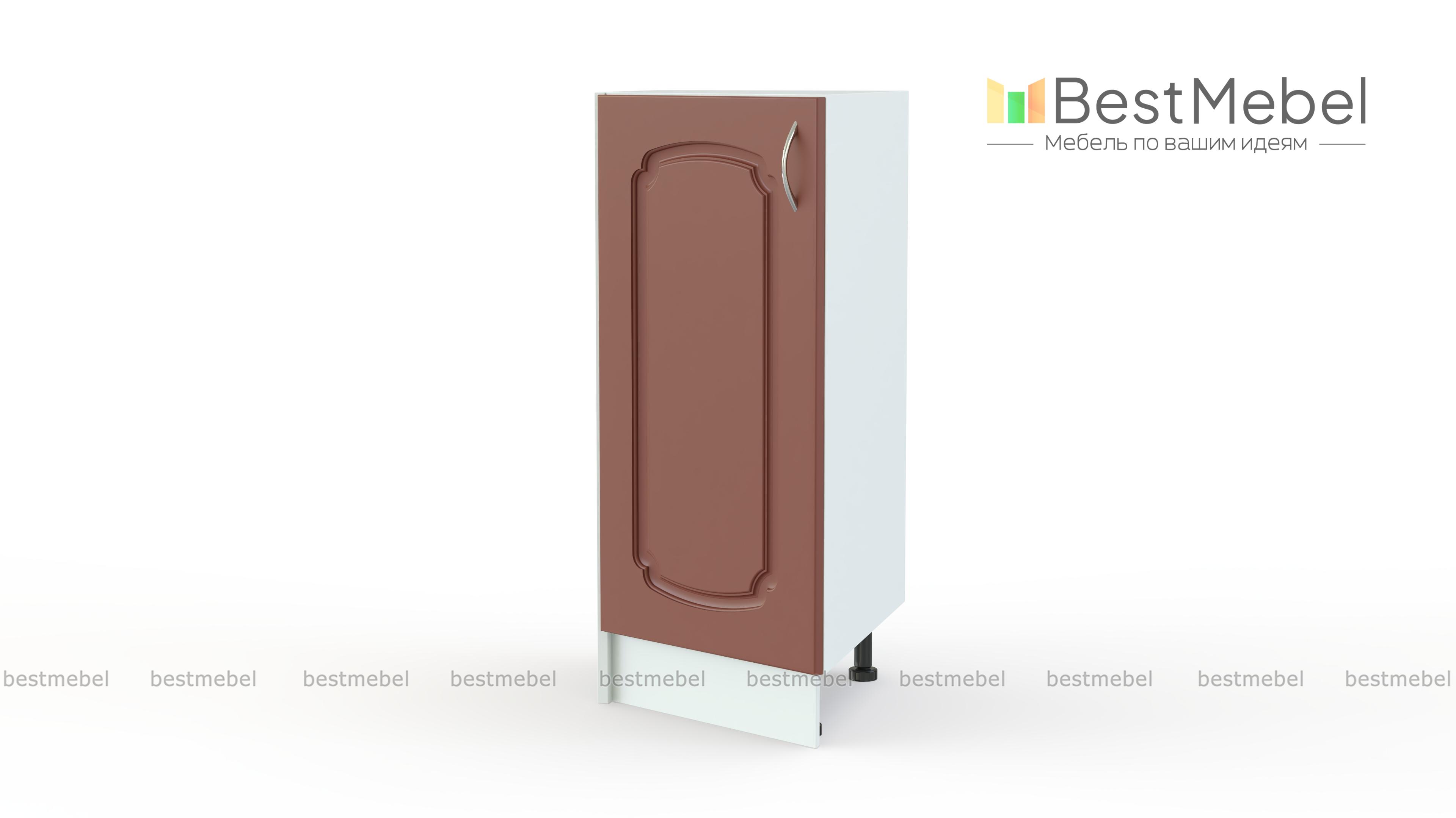 Тумба торцевая Эмилия BMS предназначена для оригинального завершения нижнего ряда модульной системы. Эффектная классическая модель оборудована распашным отделением для хранения небольших кухонных принадлежностей. Компактная и изящная, тумба придает всей конструкции визуальную легкость и сглаживает углы. Фасад декорирован фрезеровкой и тонкой ручкой под серебро, опоры – регулируемые. Купить тумбу торцевую Эмилия BMS для эстетичного кухонного интерьера вам поможет наш интернет-магазин.