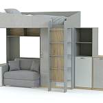 Детская комната Бета 6 BMS непременно понравится современным подросткам, сочетая в себе актуальный дизайн и высокую функциональность. Стильная модульная композиция включает в себя кровать-чердак с лестницей-стеллажом и расположенным на первом ярусе раскладным мини-диваном, пеналом и тумбой, комбинированный книжный шкаф и распашную тумбу. Комната выполнена в сочетании нейтральных тонов с яркими вставками, фасад декорирован фрезерованным рисунком. Купить детскую комнату Бета 6 BMS приглашаем в наш интернет-магазин.
