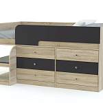 Кровать-чердак Маркиз 35 BMS – это практичный синтез спального места и системы хранения. Благодаря удачному проекту вы сэкономите пространство в комнате малыша. Чтобы забраться наверх, нужно воспользоваться прочной лестницей. Две широкие и глубокие ступени одновременно являются вариантом для расположения книг, вещей. Постель наверху – поэтому оборудована бортами. Под основанием размещены два блока: по три выдвижных ящика в каждом. Одежда и текстиль будут аккуратно разложены по полочкам. При заказе вы можете выбрать необходимый цвет ЛДСП.
