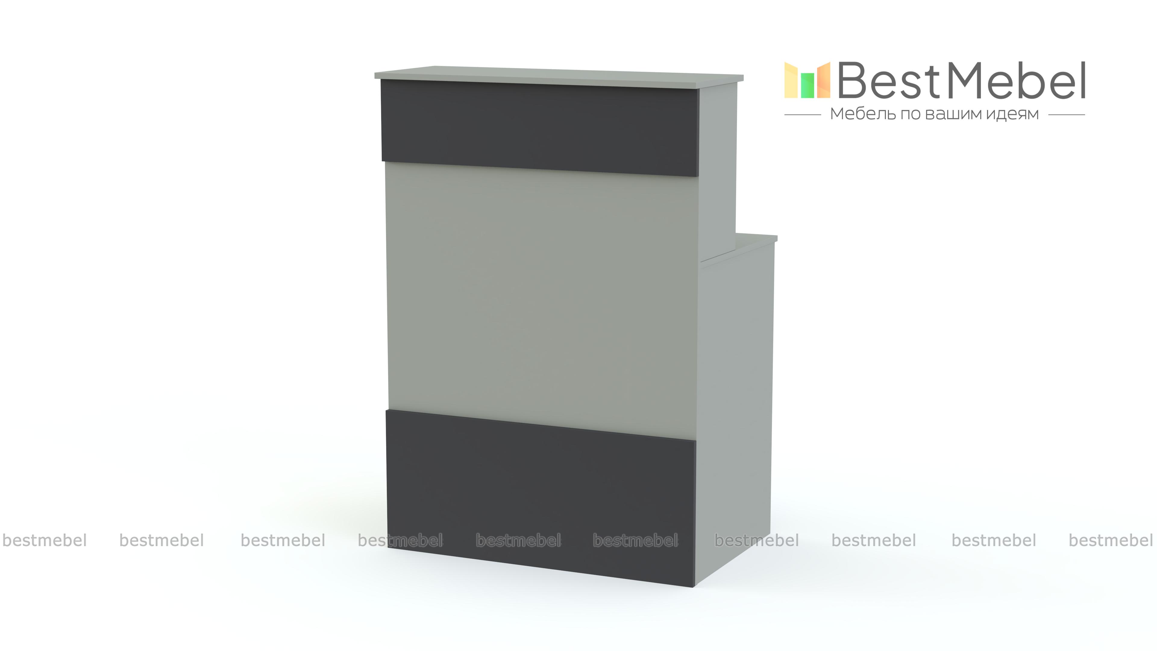 Ресепшен Рейна № 1 с тумбой BMS отличается ярким современным дизайном, простой и функциональной конструкцией. Стойка легко комбинируется с другими модулями серии для создания максимально комфортного варианта. Модель оборудована двумя столешницами – с внешней и внутренней стороны, полкой для мелочей и мобильной тумбой с тремя выдвижными ящиками. Выполненная в белом цвете, стойка декорирована горизонтальными фасадными накладками. Купить ресепшен Рейна № 1 с тумбой BMS приглашаем недорого в наш интернет-магазин.