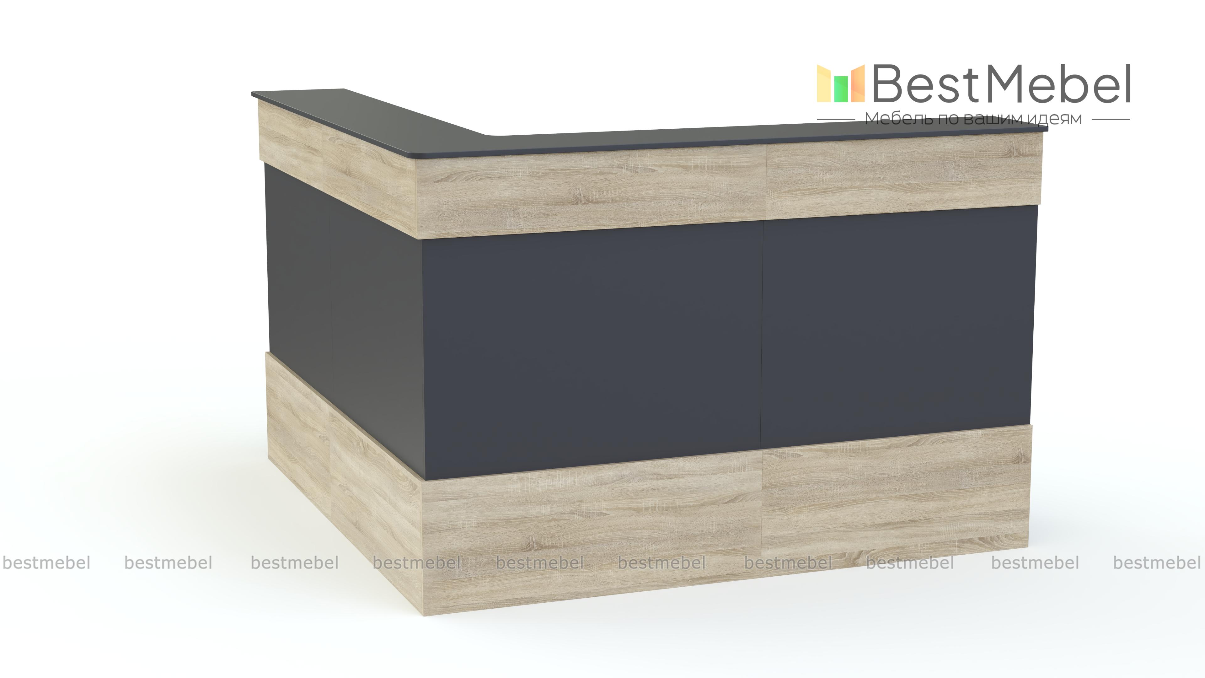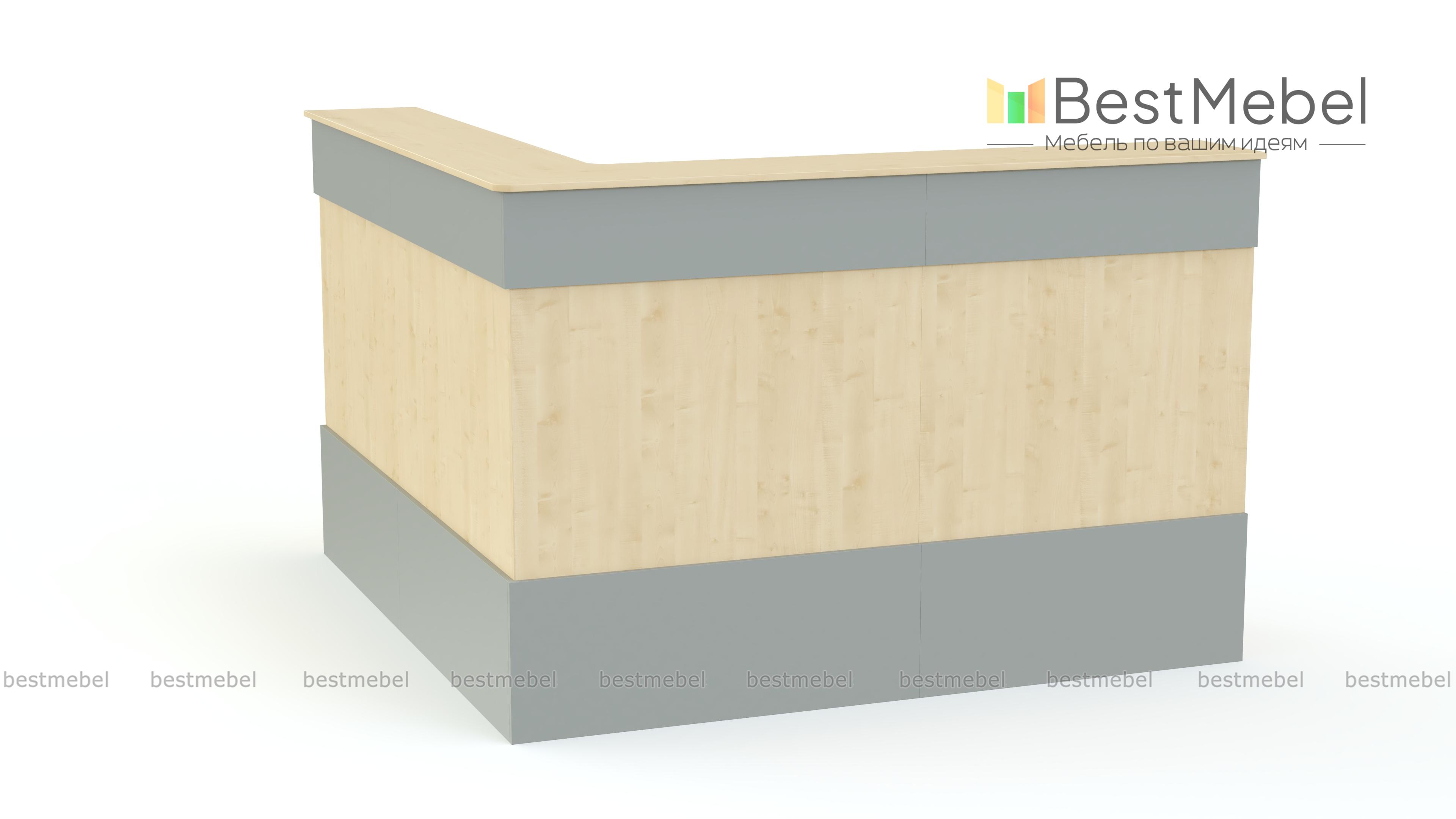 Ресепшен Рейна № 14 BMS объединил три модуля из современной серии – угловой и два прямых. Простая и функциональная, композиция оборудована широкой внешней столешницей для посетителей и внутренней – для администратора. Выполненная в универсальном белом цвете, стойка декорирована фасадными планками контрастного серого цвета и сразу привлекает к себе внимание. Купить ресепшен Рейна № 14 BMS по доступной цене и оборудовать комфортную приемную вам поможет наш интернет-магазин.