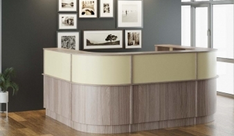 Стойка ресепшн Арни 9 BMS имеет П-образную форму, оптимальную для создания полноценного рабочего места для администратора, а представительный внешний вид делает ее лицом современного офиса. Радиусная модель оборудована просторной эргономичной столешницей для посетителей и внутренней, предназначенной для сотрудника. В оформлении фасада стойки скомбинированы насыщенные древесные тона и ванильный. Купить стойку ресепшн Арни 9 BMS приглашаем на сайт нашего интернет-магазина.