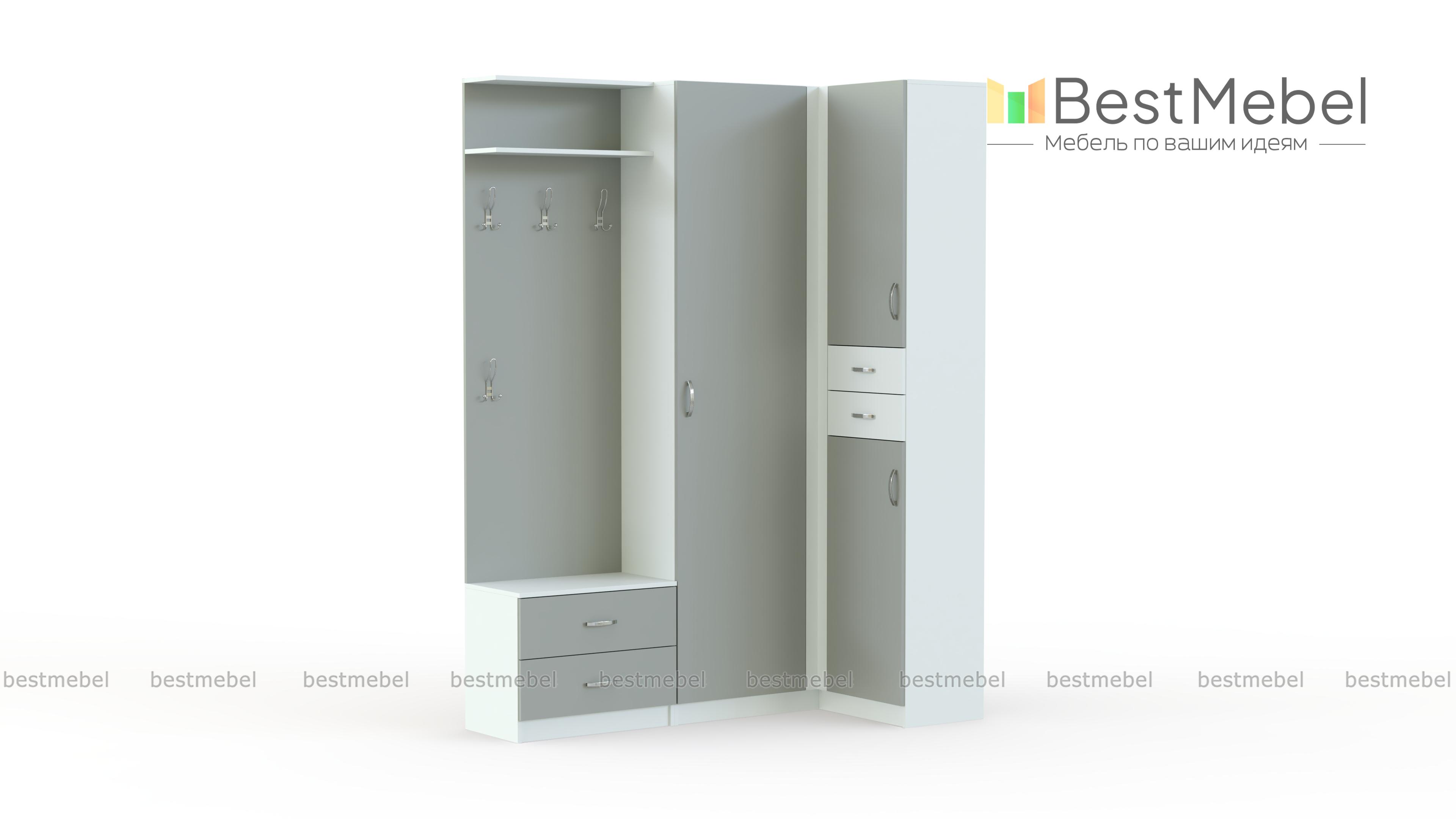 Прихожая МП52 BMS станет не только удобной системой хранения, но и ярким интерьерным акцентом. Отличный выбор для малогабаритного помещения, угловая модель занимает минимум места, но при этом оборудована всем необходимым комфортной входной зоне. Для размещения одежды, обуви и аксессуаров предназначены однодверный и комбинированный шкафы, открытая вешалка, полки и тумба с двумя выдвижными ящиками. Нейтральные матовые фасады эффектны и долговечны. Купить Прихожую МП52 BMS приглашаем в наш интернет-магазин по доступной цене.