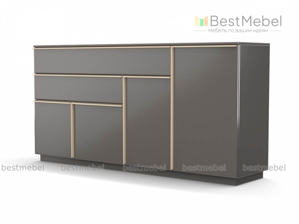 Комод BW 1154 BMS – крупногабаритная модель, которая составит стильный комплект с другими предметами популярной серии или может использоваться самостоятельно. Уместный и в спальне, и в гостиной, комод прост по форме и смотрится эффектно за счет матовых поверхностей в оттенке графит. Контрастные древесные вставки, оформляющие фасады, подчеркивают строгую геометричность. Для размещения бытовых мелочей предусмотрены выдвижные ящики и распашные отделения разных размеров, а столешница выгодно представит предметы декора. Купить комод BW 1154 BMS вы всегда сможете в нашем интернет-магазине.
