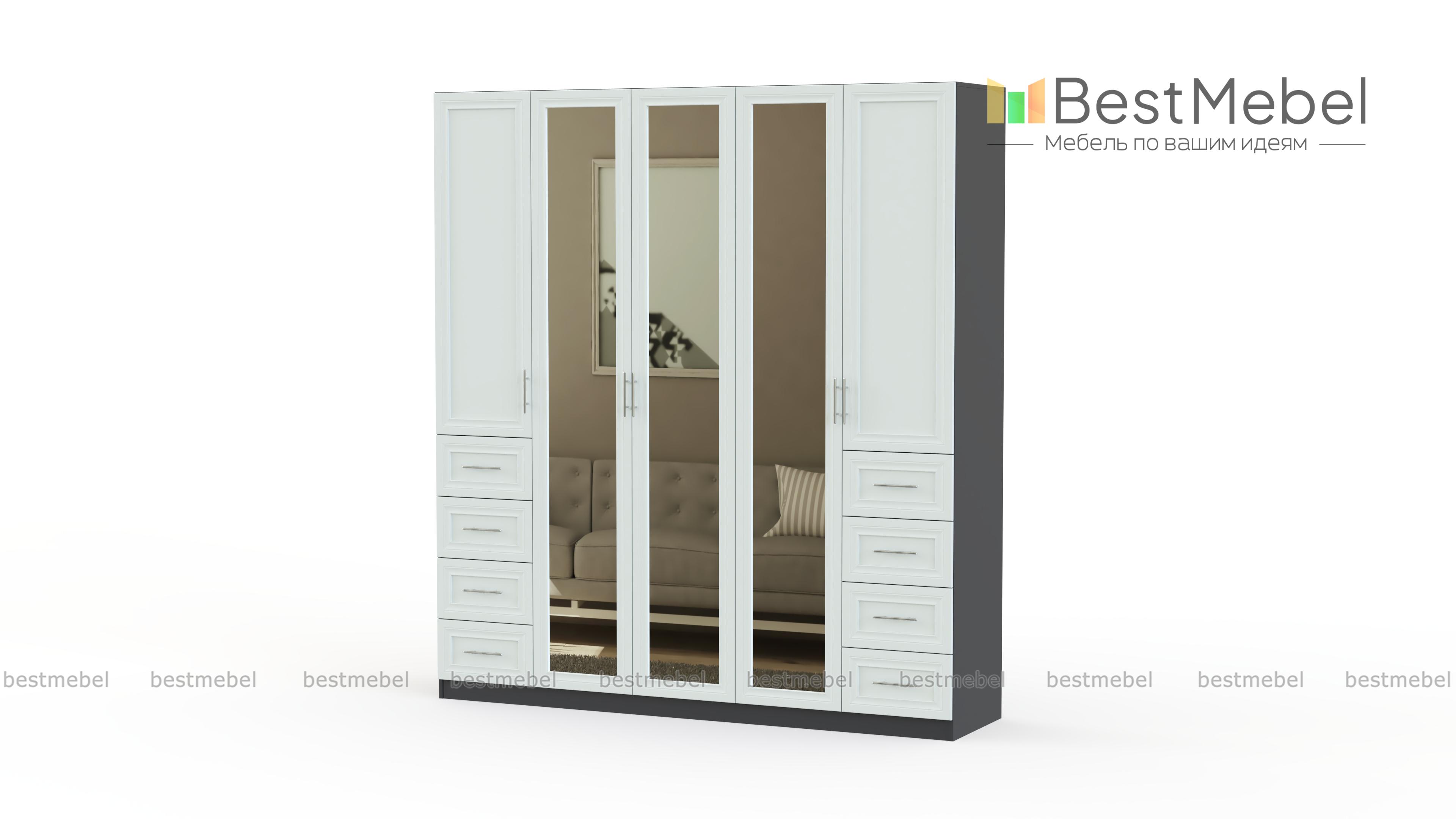 Распашной шкаф Крона 19 BMS станет незаменимым в интерьере просторной спальни или гардеробной благодаря редкой вместительности и трем зеркальным дверцам в центральной части. Крупногабаритная конструкция отличается надежностью и визуальной легкостью благодаря светлым рамочным фасадам древесных тонов. Внутреннее наполнение из двух платяных отделений, двух бельевых секций и выдвижных ящиков позволит бережно разместить предметы гардероба. Купить распашной шкаф Крона 19 BMS, подобрав необходимые параметры, вы сможете в нашем интернет-магазине.