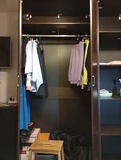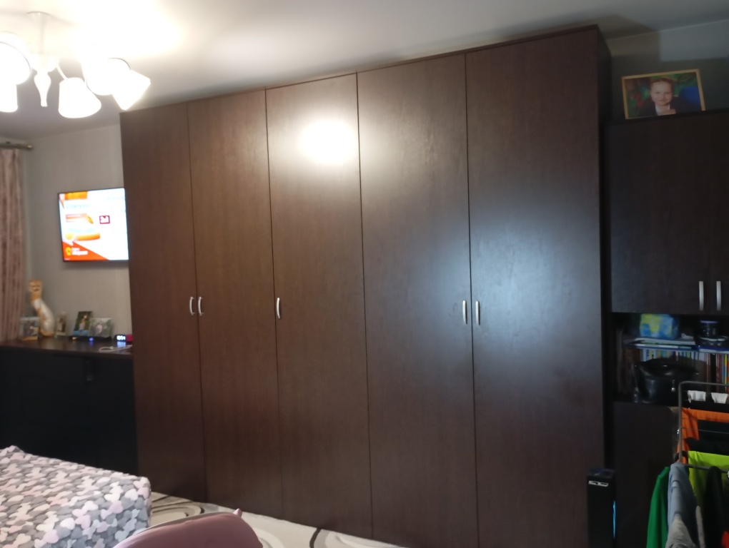 Заказали шкаф на свой страх и риск. Из ЛДСП по своим замерам. Ручки заказывали на меркетплэйсе. В целом довольны, учитывая, что выбрали лдсп. И это при наших размерах более менее адекватная цена. Из минусов: схема сборки не совсем понятная. Деталей много и было сложно понять что куда и к чему крепится и потратили много времени из-за этого. Можно было бы более понятную схему сборки сделать.Из фурнитуры пару единиц отсутствует. Некритично, но хотелось бы чтобы комплектация была полная.Сами двери слегка кривые и это заметно когда вешаешь их на навесы и сложно отрегулировать, так как видны зазоры и неровности из-за кривизны.Так в целом шкаф хороший , советую 👍
