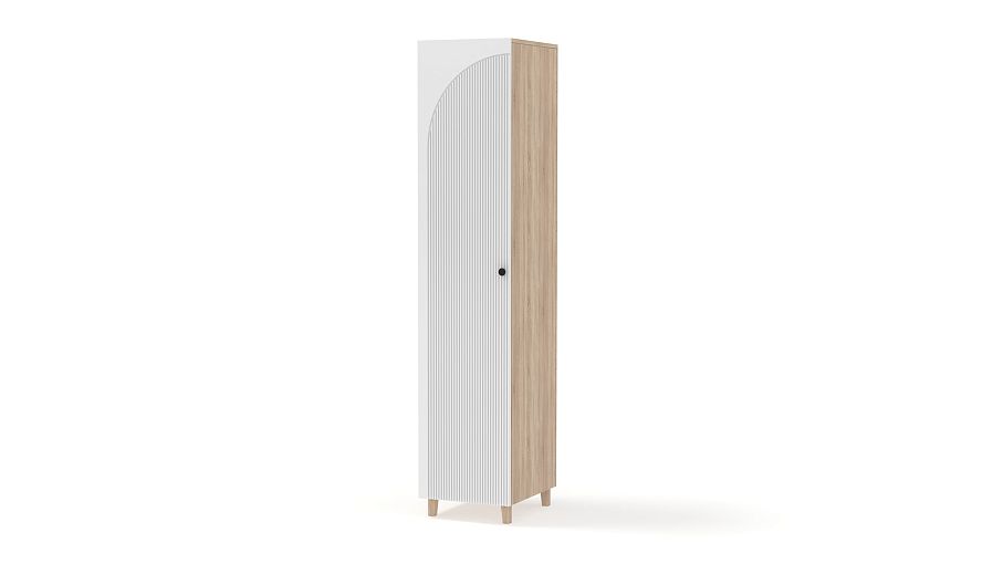 Шкаф-пенал Вивьен 3 BMS поможет вам с хранением в детской комнате, прихожей, небольшой гостиной. Стильный пенал с одним вместительным распашным отделением и корпусом из ламинированной плиты располагается на высоких деревянных ножках. Белый фасад выполнен из МДФ с фрезерованной отделкой, дверца удобно открывается с помощью миниатюрной круглой ручки. Купить шкаф-пенал Вивьен 3 BMS приглашаем в наш интернет-магазин, подобрав размеры, цвет и фурнитуру.