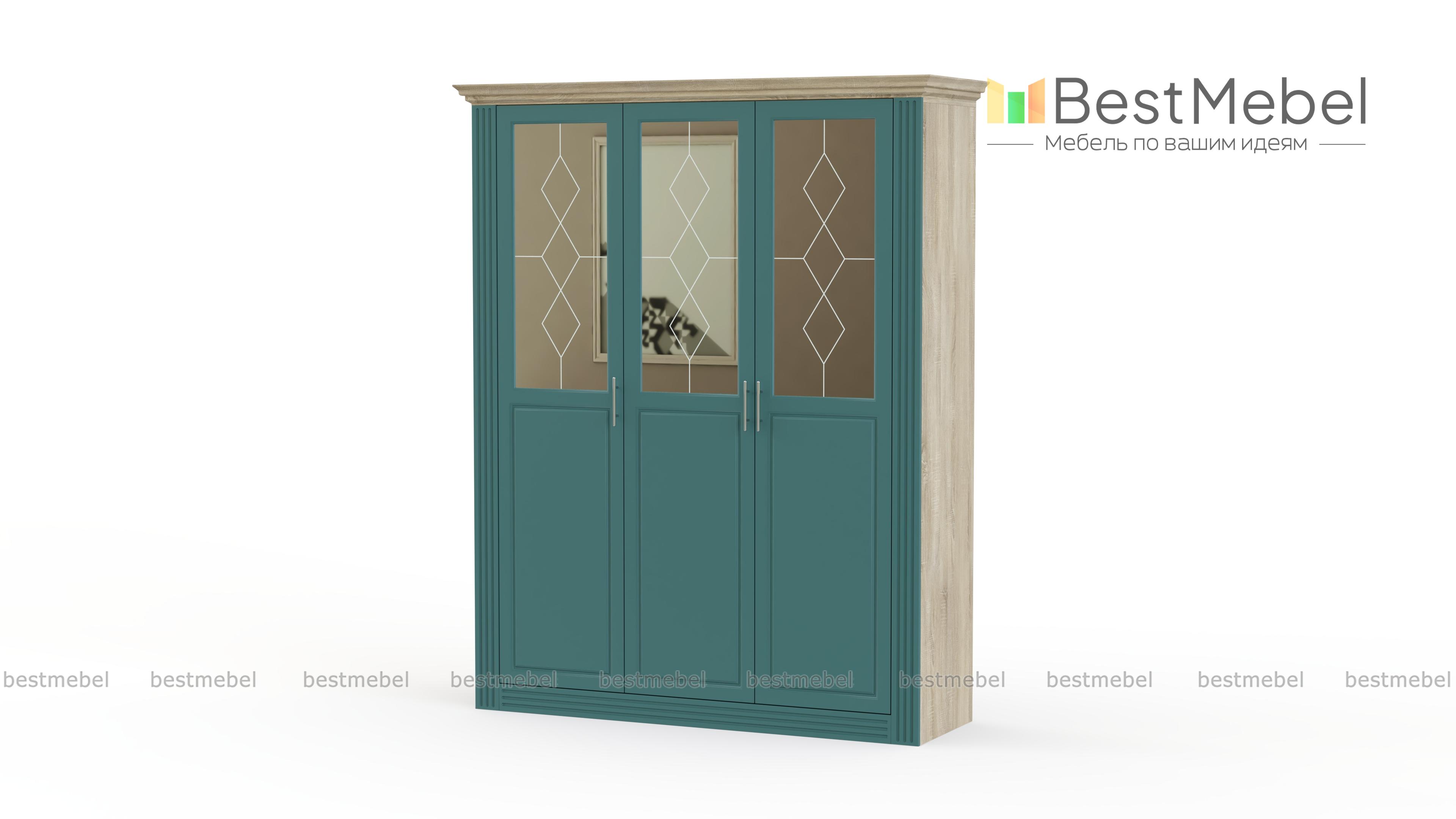 Шкаф распашной Классика 8 BMS станет частью солидного традиционного интерьера. Модель с рамочными фасадами выполнена в темных тонах, украшена фрезеровкой и декоративными зеркальными вставками с рисунком. За тремя распашными дверцами с хромированными ручками – секция с полками для постельных принадлежностей, антресольная полка и просторное платяное отделение со штангой. Купить шкаф распашной Классика 8 BMS, подобрав цветовое решение, приглашаем по доступной цене в наш интернет-магазин.