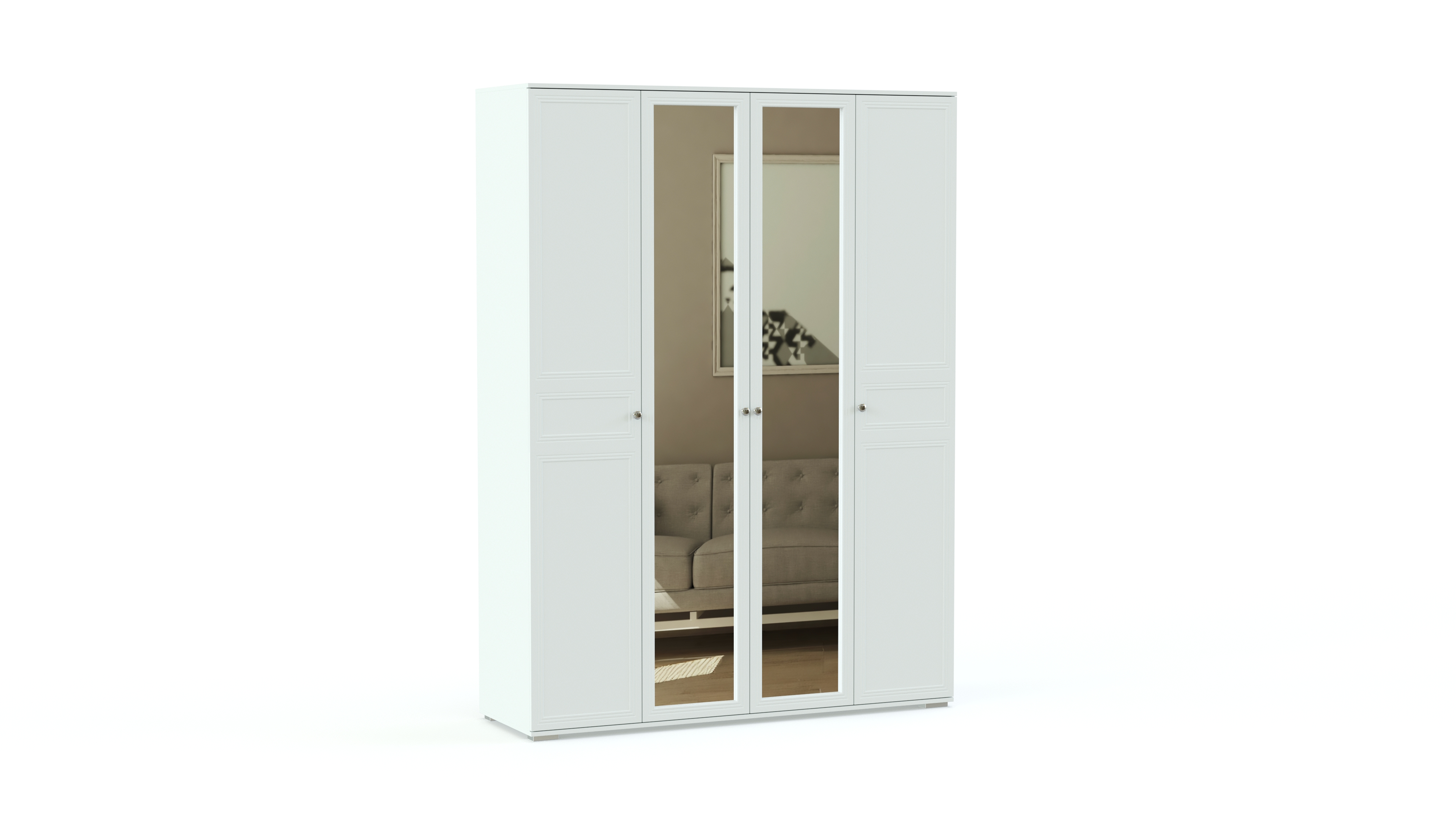 Эффектная женственная модель смотрится особенно выигрышно за счет светлой расцветки, оригинальной фурнитуры и сочетания в оформлении фасадов различных материалов. В комплекте роскошная двуспальная кровать с мягкой, изящной формы спинкой, прикроватная тумба, вместительный распашной шкаф с зеркалами в полный рост и изысканный туалетный столик. Спальня Карина 1 BMS станет отличным выбором для классического интерьера, подчеркнув все его достоинства.