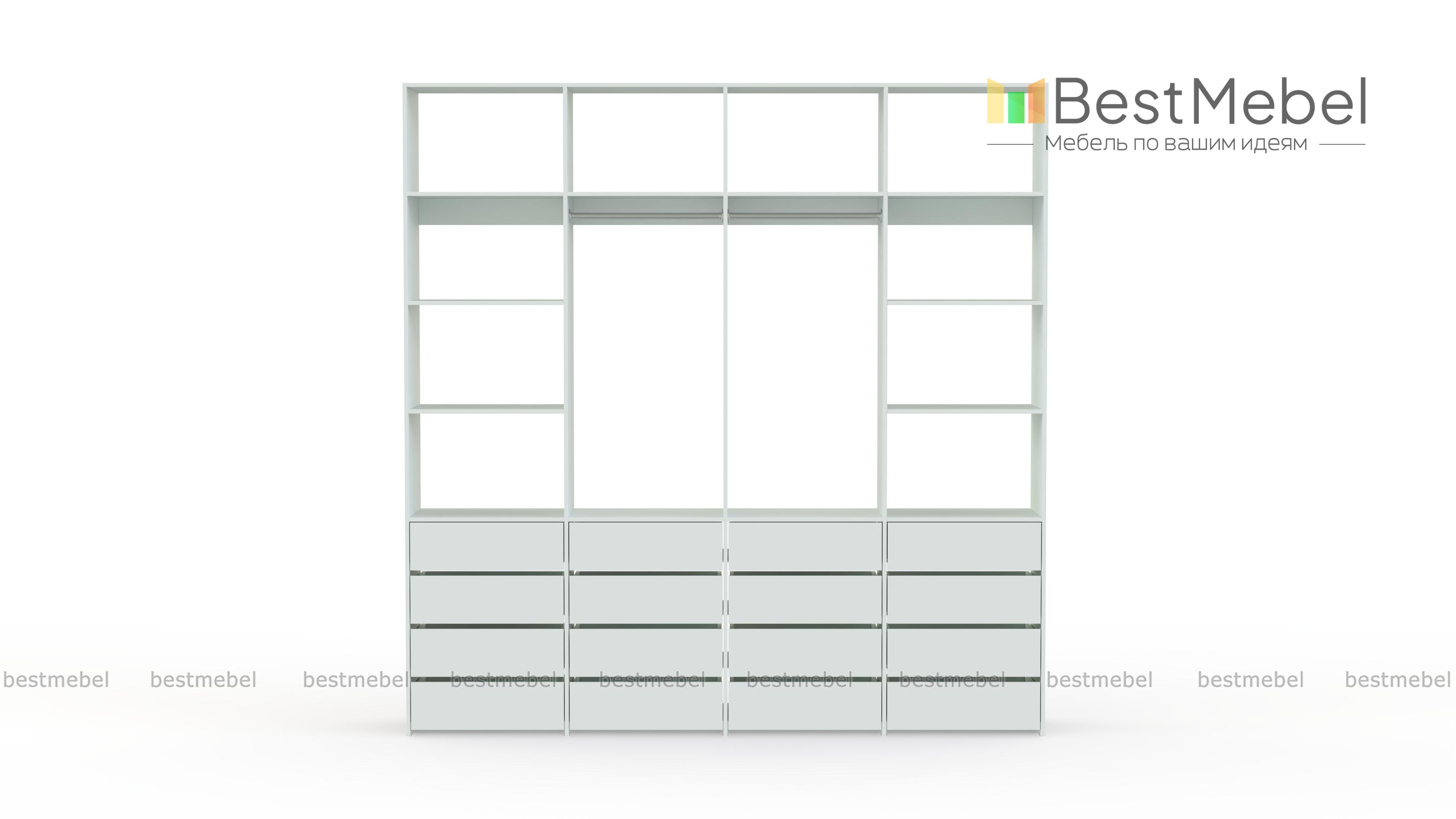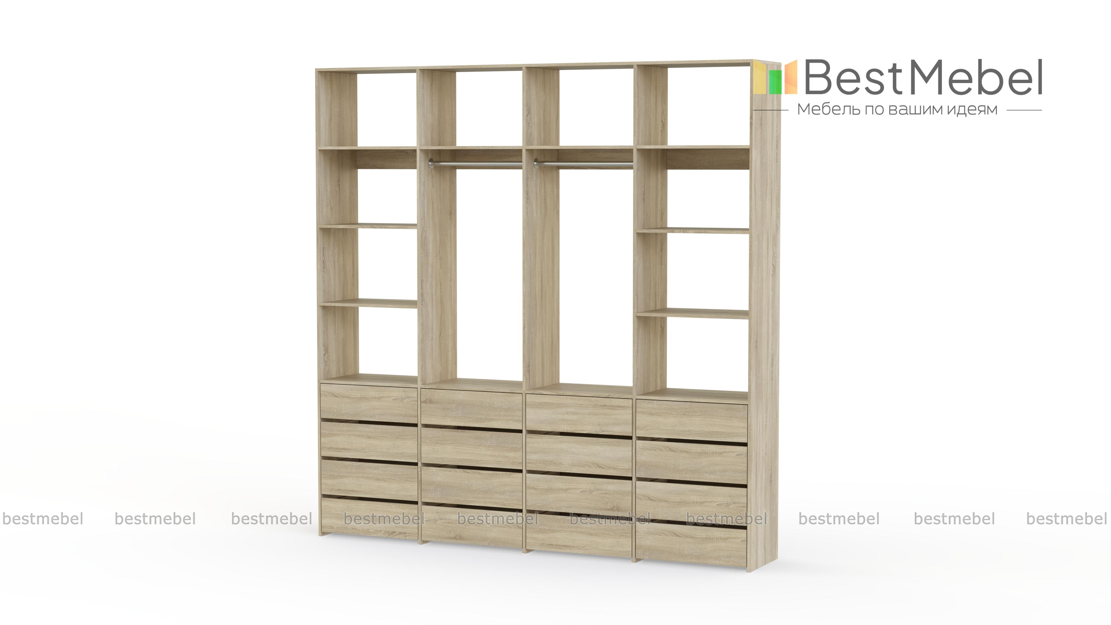Стеллаж для одежды Мирта 63 BMS — это продуманная система хранения и функциональный современный дизайн. Две штанги и полки помогут разместить вешалки с одеждой, обувные коробки и текстиль, а четыре ряда выдвижных ящиков станут полноценной заменой бельевому комоду. Для изготовления стеллажа использована ламинированная ДСП высокого качества и надежная фурнитура. Купить стеллаж для одежды Мирта 63 BMS с выбором размера и цвета по каталогу приглашаем в наш интернет-магазин.