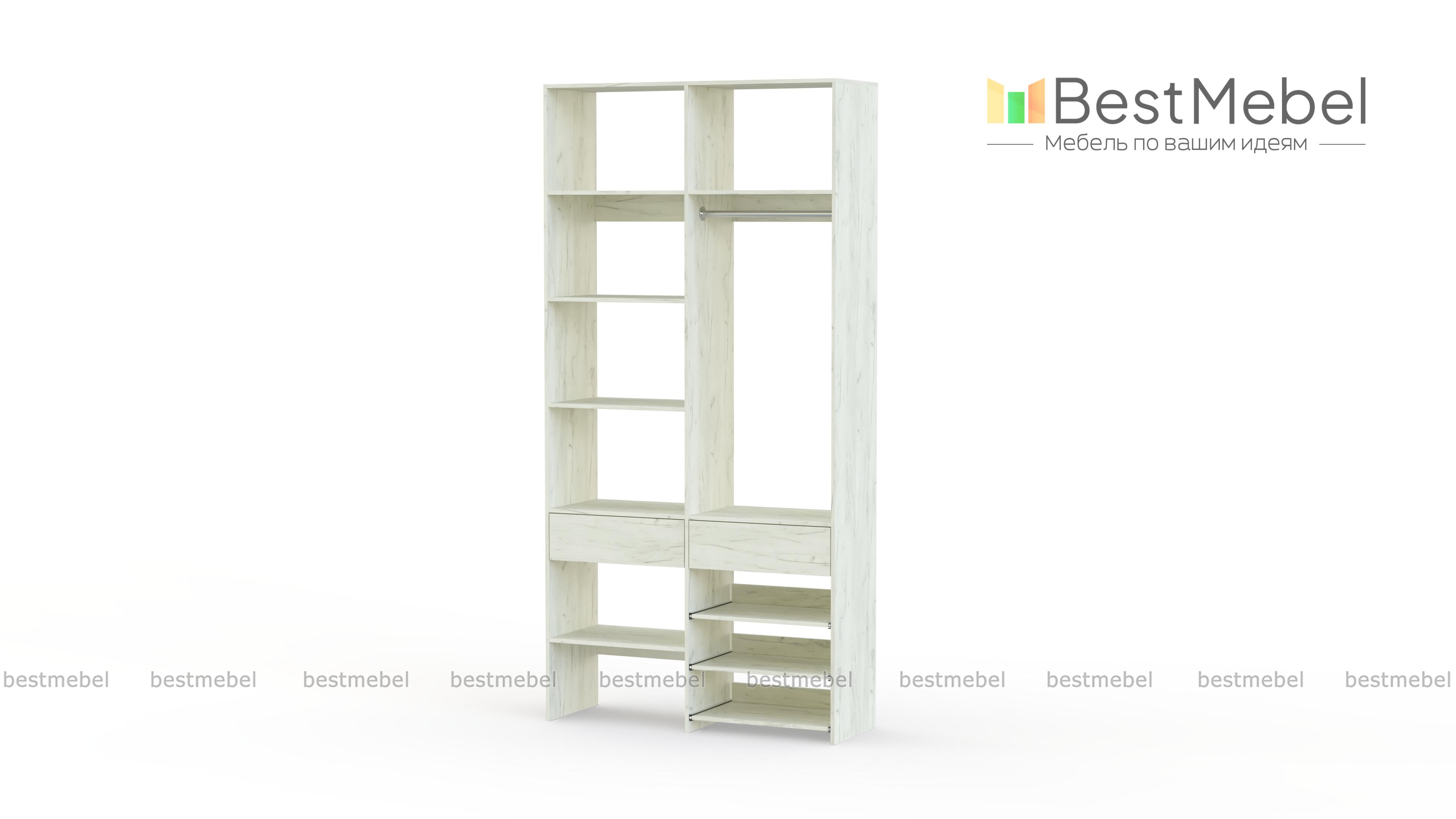 Стеллаж для одежды Мирта 81 BMS — компактная и вместительная система хранения в прихожую, спальню, гардеробную. Одежная штанга, два ящика под аксессуары и мелкий трикотаж, ряд бельевых полок и выдвижных панелей имеют эргономичное размещение. Благодаря простой форме и современному функциональному дизайну стеллаж легко комбинируется с другими предметами обстановки. Купить стеллаж для одежды Мирта 81 BMS приглашаем в наш интернет-магазин, подобрав цвет и размеры.