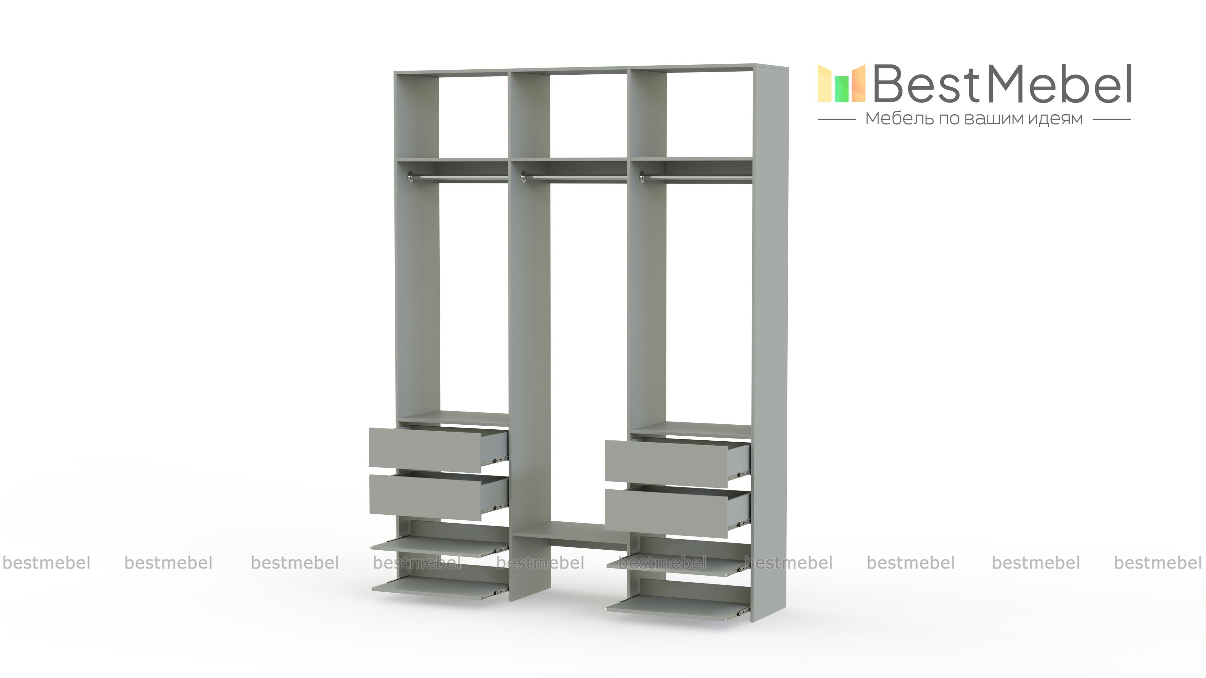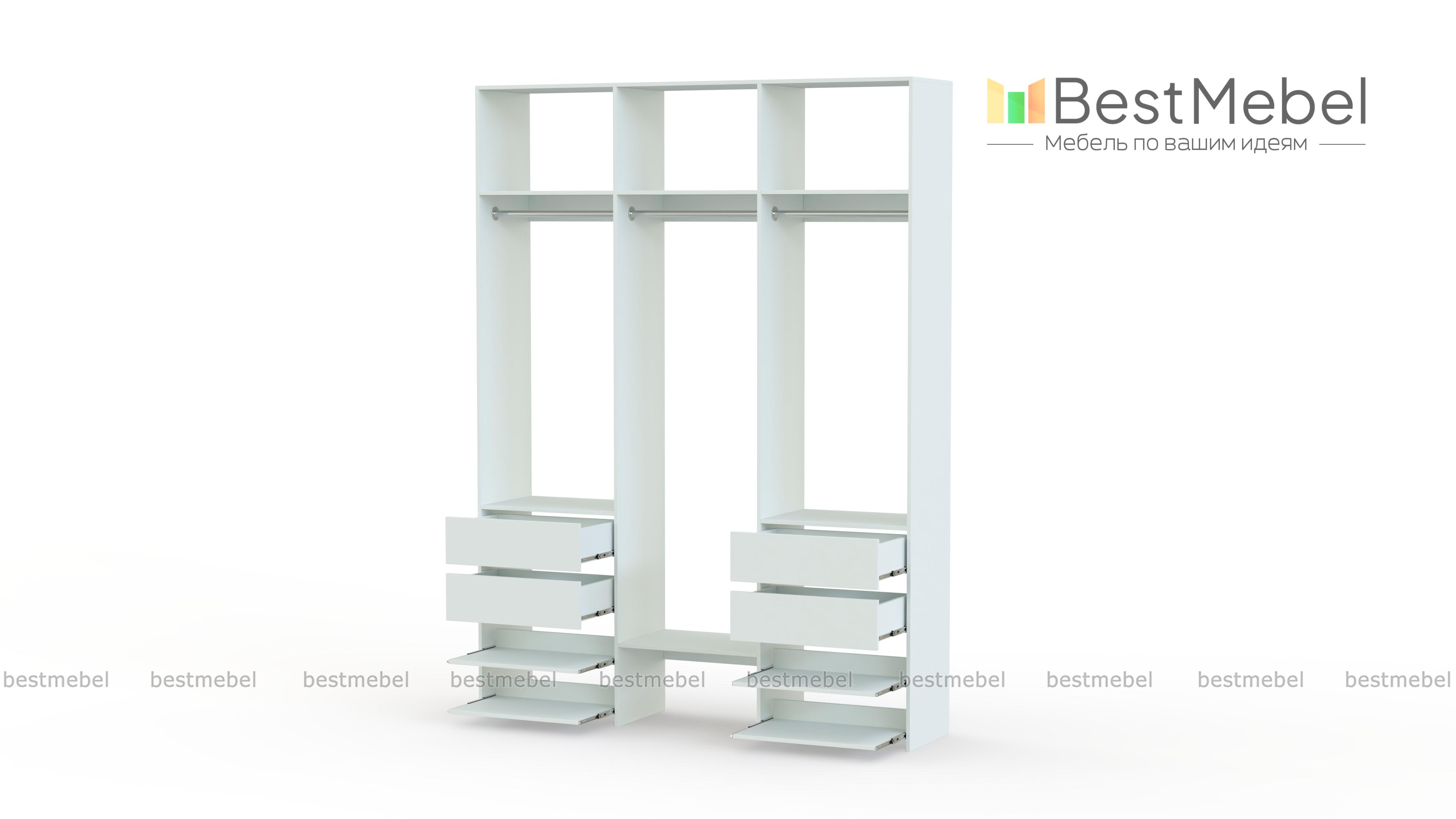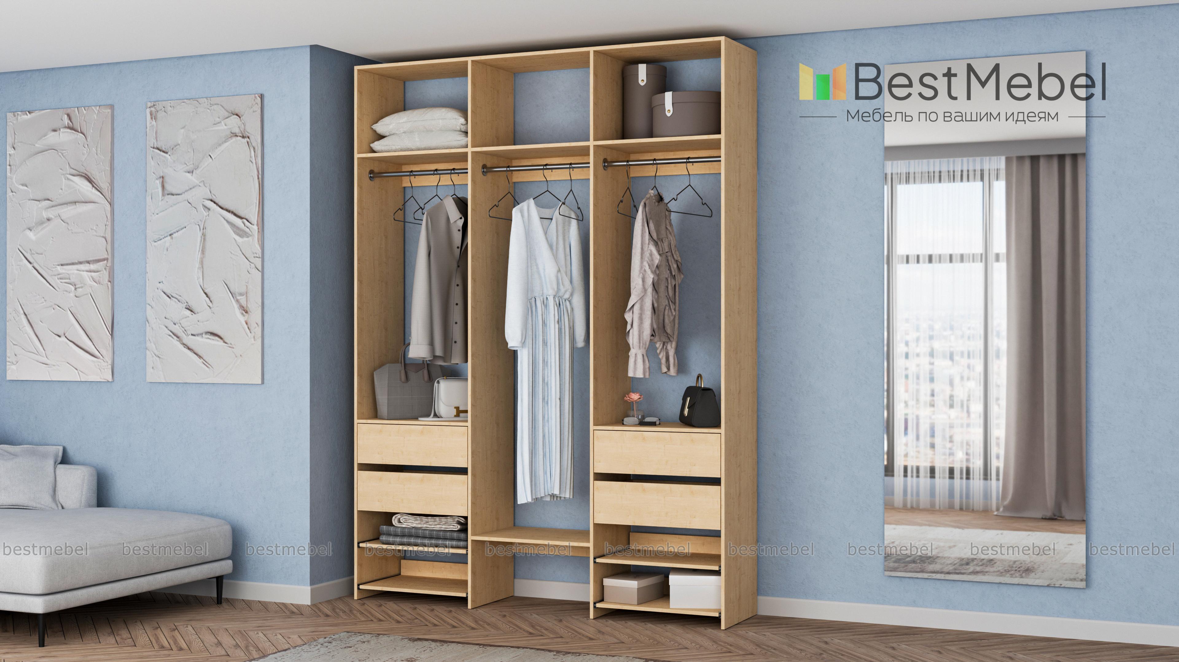 Стеллаж для одежды Мирта 92 BMS обеспечит вашему гардеробу удобное открытое хранение. Три штанги предназначены для короткой и длинной одежды, верхние секции разместят те вещи, что редко используются, а выдвижные ящики и полки — по два справа и слева, облегчат доступ к обуви и мелочам. Ламинированные поверхности стеллажа износостойкие и легко моются. Купить стеллаж для одежды Мирта 92 BMS в необходимом размере и оттенке из каталога вы сможете на сайте нашего интернет-магазина.