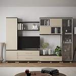 Небольшая модель с оригинальным дизайном. Стенка Эллада-5 очень симпатичная, а ее необычные ассиметричные формы, наверняка привлекут внимание ценителей. Она создает впечатление легкости и простора. Приземистые нижние тумбы и длинный застекленный пенал, закрытый пенал с полками и интересная по дизайну навесная тумбочка – все это выглядит очень интересно. Имеется большое открытое место для телевизора и остальной аппаратуры. Купить такую мебель можно для гостиной, большой спальни, офиса.