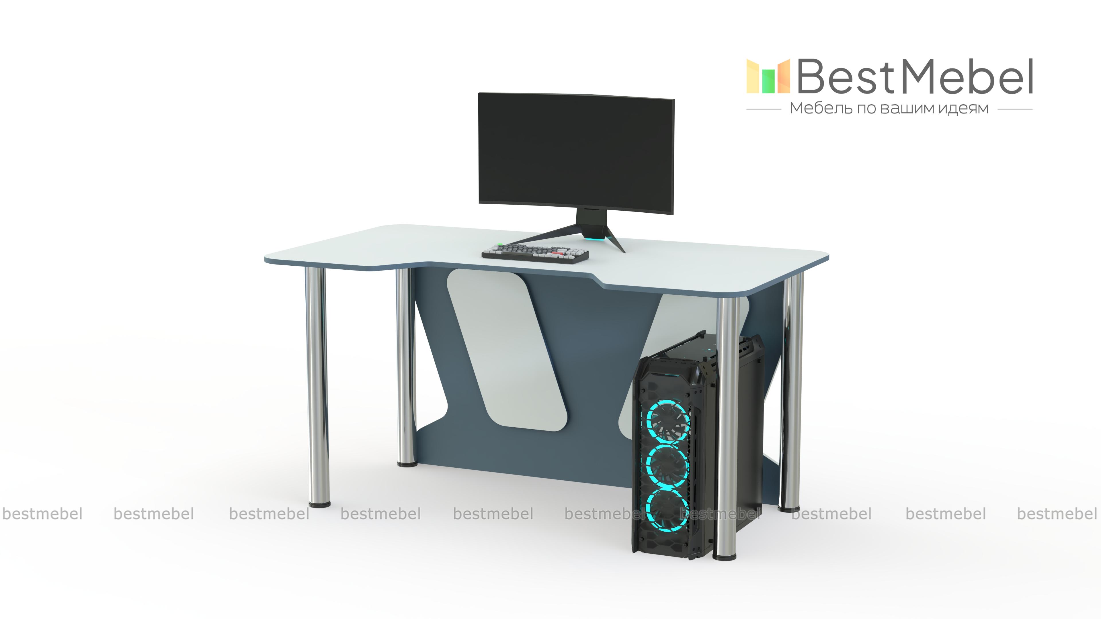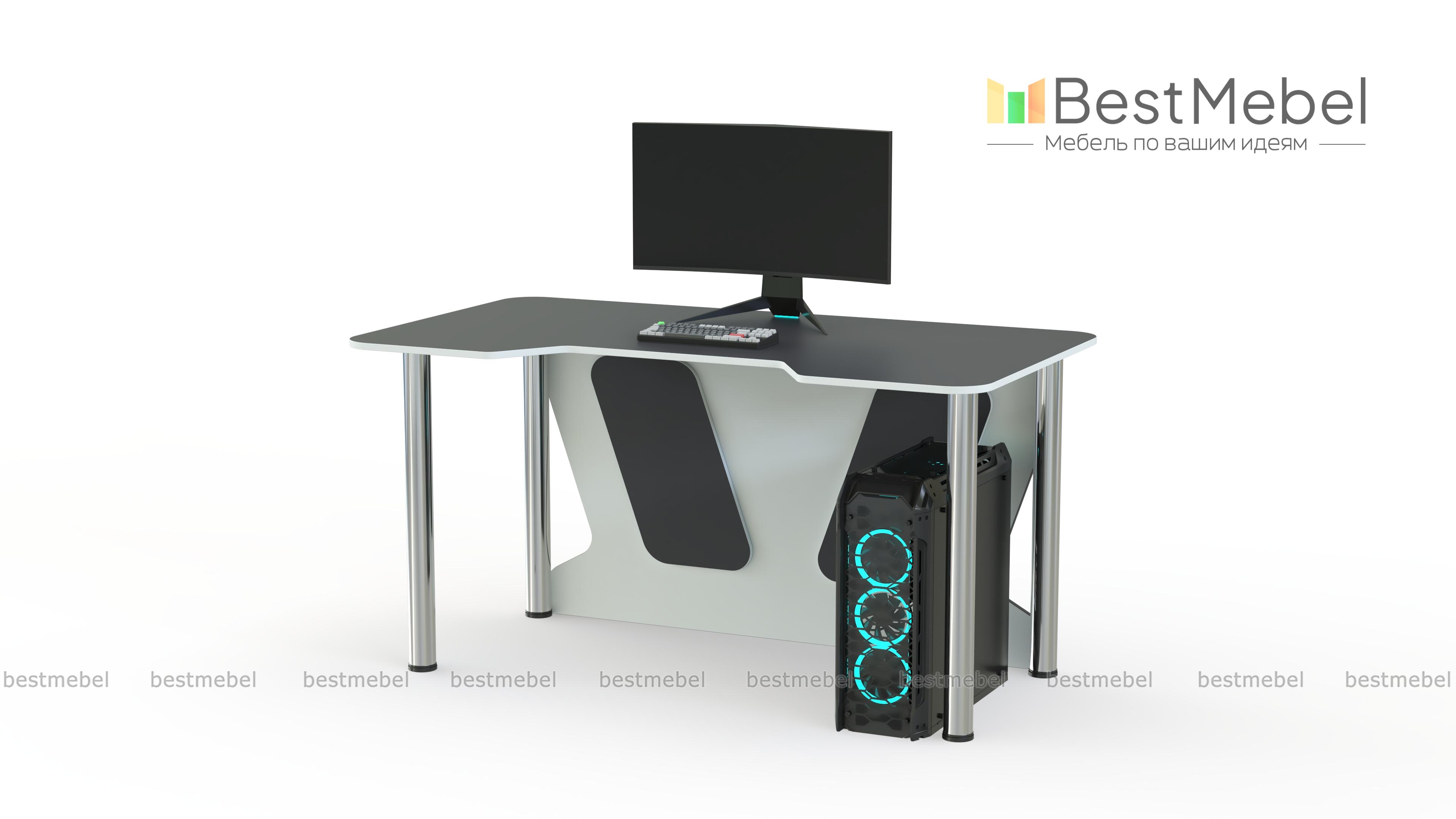 Геймерский стол Таун 13 BMS – базовый вариант для игры, учебы или работы. Легкий и устойчивый благодаря регулируемым хромированным опорам, стол оборудован просторной столешницей с безопасно скругленными углами и декоративно вырезанной задней стенкой. Трапециевидная выемка переднего края поможет занять правильное положение и снизит нагрузку на локти. Купить геймерский стол Таун 13 BMS с возможностью изготовления по индивидуальным размерам приглашаем в наш интернет-магазин.
