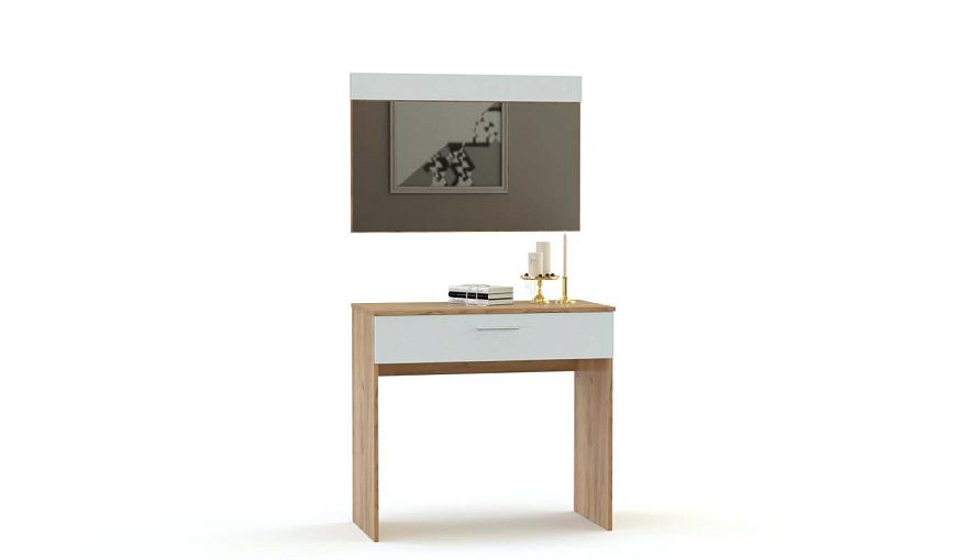 Туалетный стол Селена Evo 3 BMS выполнен в нейтральном белом цвете, на фоне которого эффектно смотрится золотой крафт. Лаконичный прямоугольный столик, дополненный большим навесным зеркалом, органично впишется в интерьер современной спальни. Для удобного хранения необходимых уходовых средств и аксессуаров под столешницей имеется вместительный выдвижной ящик. Купить туалетный стол Селена Evo 3 BMS вы сможете в нашем интернет-магазине с учетом оптимальных размеров.