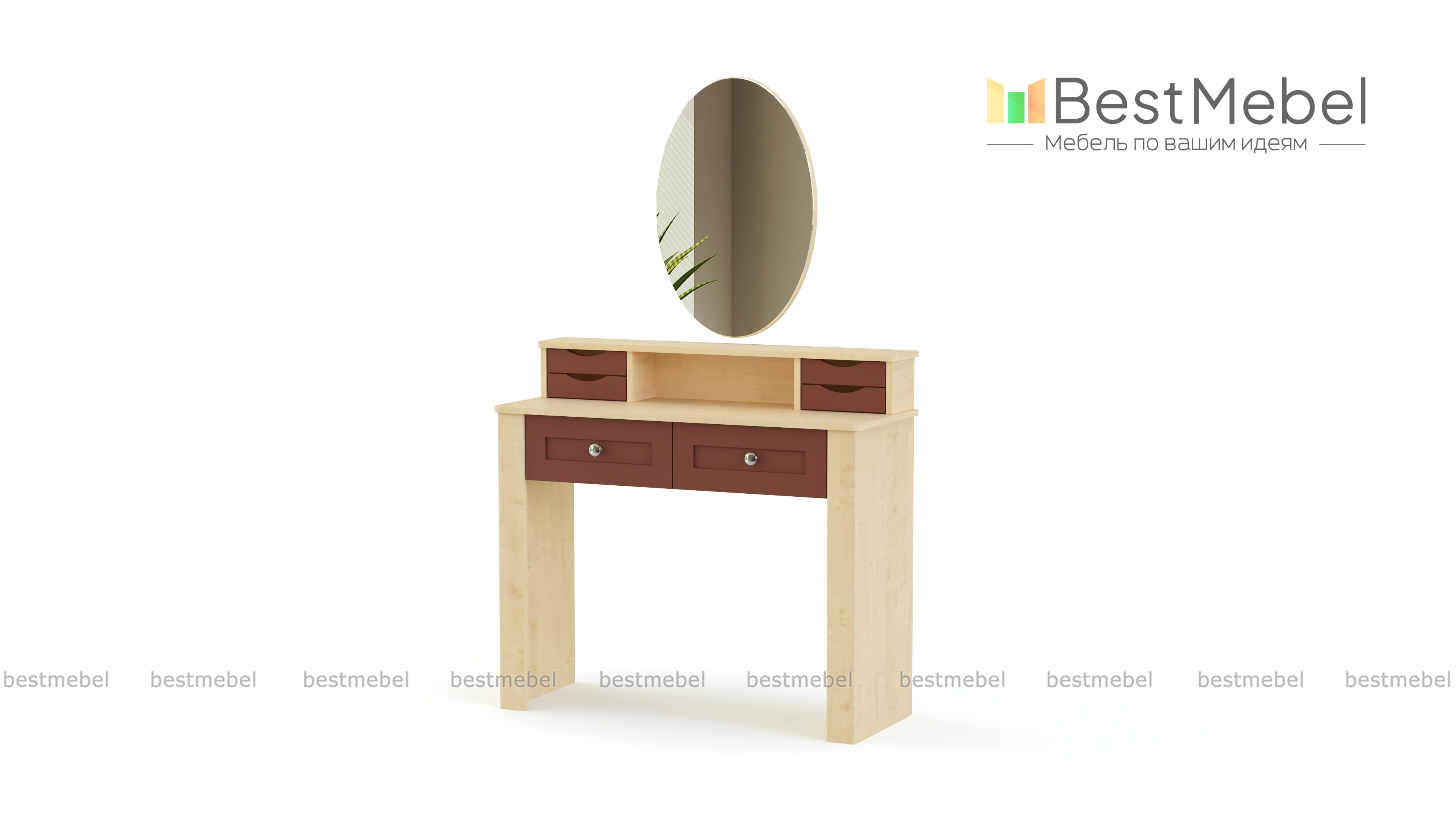 Туалетный столик Бриз 2.10 BMS придаст завершенный вид спальному интерьеру. Лаконичный прямоугольный столик с безопасно скругленными углами выглядит массивнее благодаря накладкам на фасаде и выполнен в светлых натуральных тонах. Разместить все необходимые мелочи помогут вам два выдвижных ящика под столешницей и надстройка с боковыми ящичками и нишей, а сделает уход за собой комфортным овальное зеркало. Купить туалетный столик Бриз 2.10 BMS приглашаем в наш интернет-магазин.