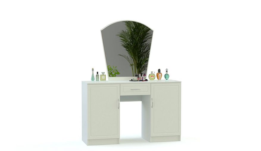 Туалетный столик Марьяна 1 BMS поможет расположить большое количество всех необходимых уходовых средств и декоративной косметики благодаря продуманной и вместительной конструкции. Модель, выполненная в универсальном белом цвете, оборудована двумя просторными распашными отделениями с полками и удобным выдвижным ящиком, а зеркало фигурной формы позволит с комфортом нанести макияж. Купить туалетный столик Марьяна 1 BMS с выбором подходящего цветового решения вам поможет наш интернет-магазин.