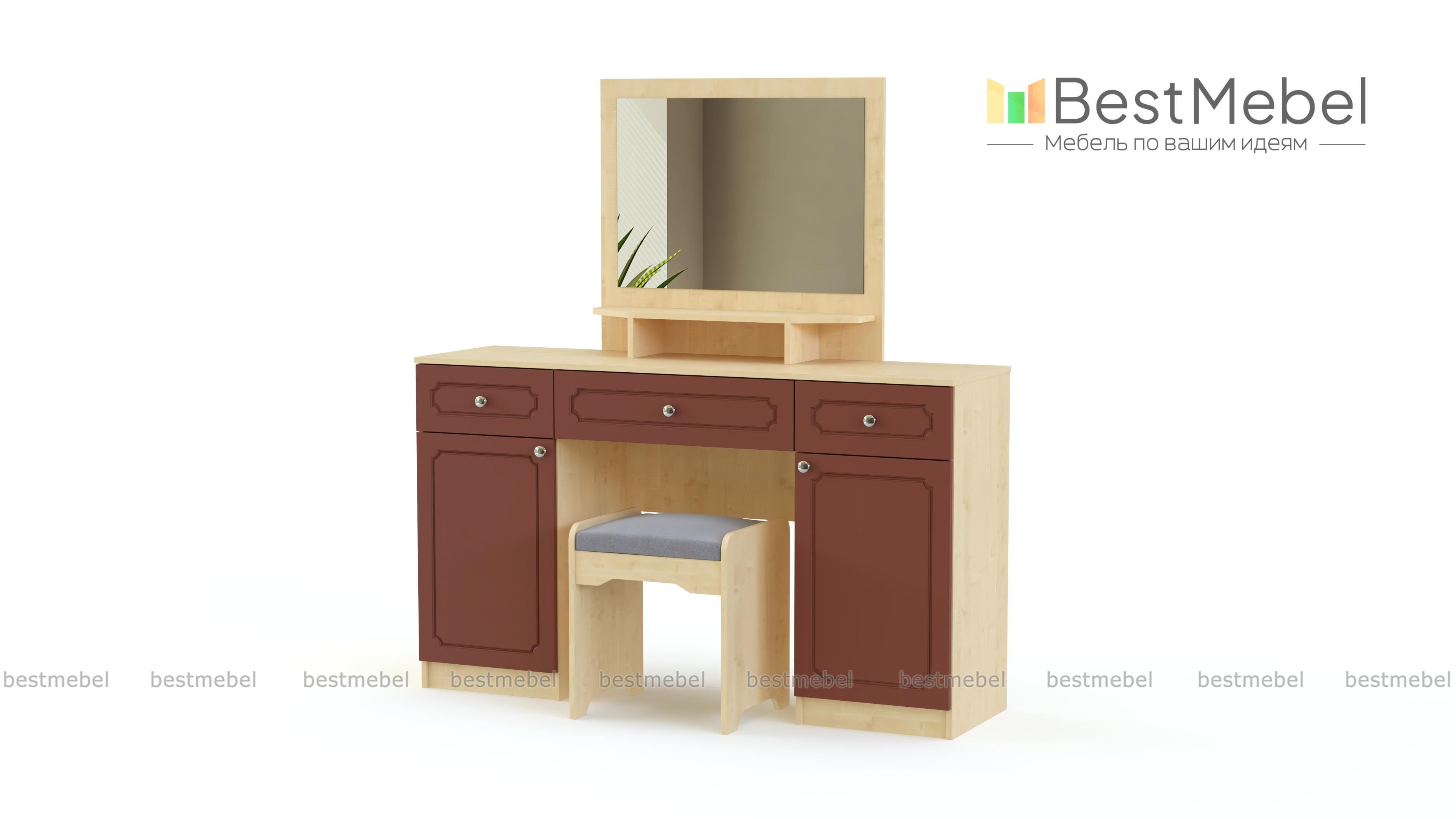 Туалетный столик Труди BMS поможет вам создать комфортный спальный интерьер в классическом стиле. Компактный столик, выполненный в светлых тонах, отличается изящными формами и декорирован по фасаду фрезеровкой. Модель оборудована тумбой с выдвижным ящиком и распашным отделением, а также фигурно вырезанным зеркалом, за которым скрыты полки для уходовых средств. Купить туалетный столик Труди BMS и разместить под рукой все необходимые мелочи вы сможете с помощью нашего интернет-магазина.