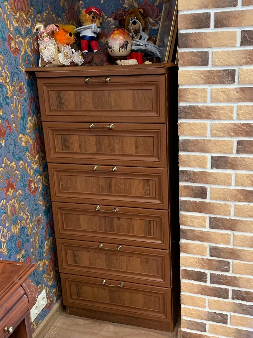 Заказывала комод вместе со шкафом в спальню на дачу. Комод должен был вписаться в нишу между каминной трубой и стеной и быть довольно глубоким. И шкафом и комодом осталась очень довольна! Без особых хлопот заказала нужный цвет, фурнитуру и самое главное  - необходимые мне размеры. Это , без сомнения, на сайте четко отлажено, что ооооочень удобно для клиентов! На фото видно, что по глубине получилось отличное попадание, а по ширине - почему-то изготовили чуть уже запрошенных мною 650 мм, изготовили 610!!! Но ввиду  того, что общее впечатление от мебели приятное, решила не обращать на это внимания. В целом - спасибо! Радость получаю!! Единственное, пожалуйста, разработайте нормальные пошаговые инструкции сборки вашей мебели! Мне кажется это очень важным для  реноме компании!!!