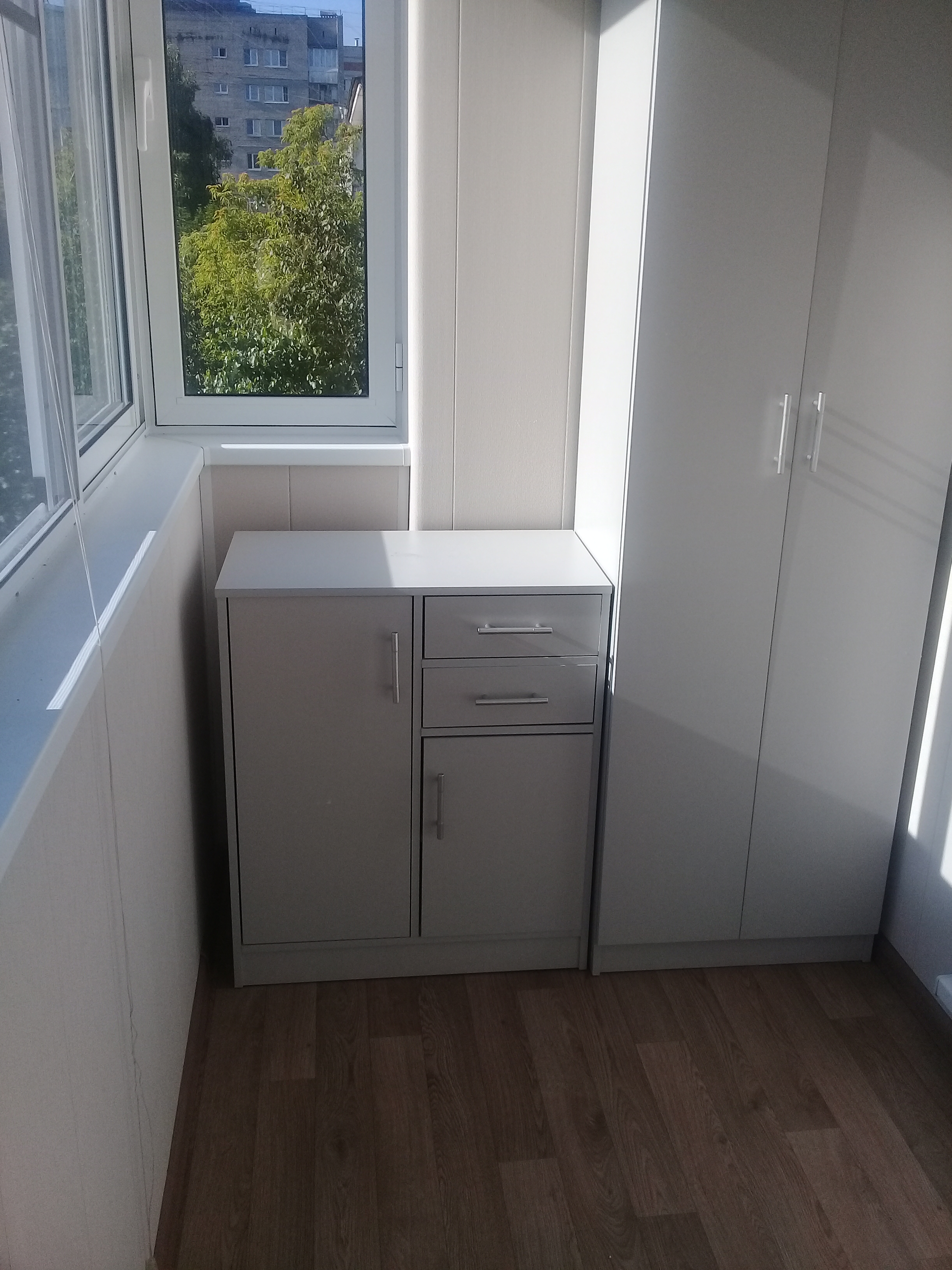 Добрый день!Заказала шкаф и комод на балкон.Очень красиво получилось.Шкаф вместительный,собрали легко.Доставка без нареканий,очень быстро,за два дня.